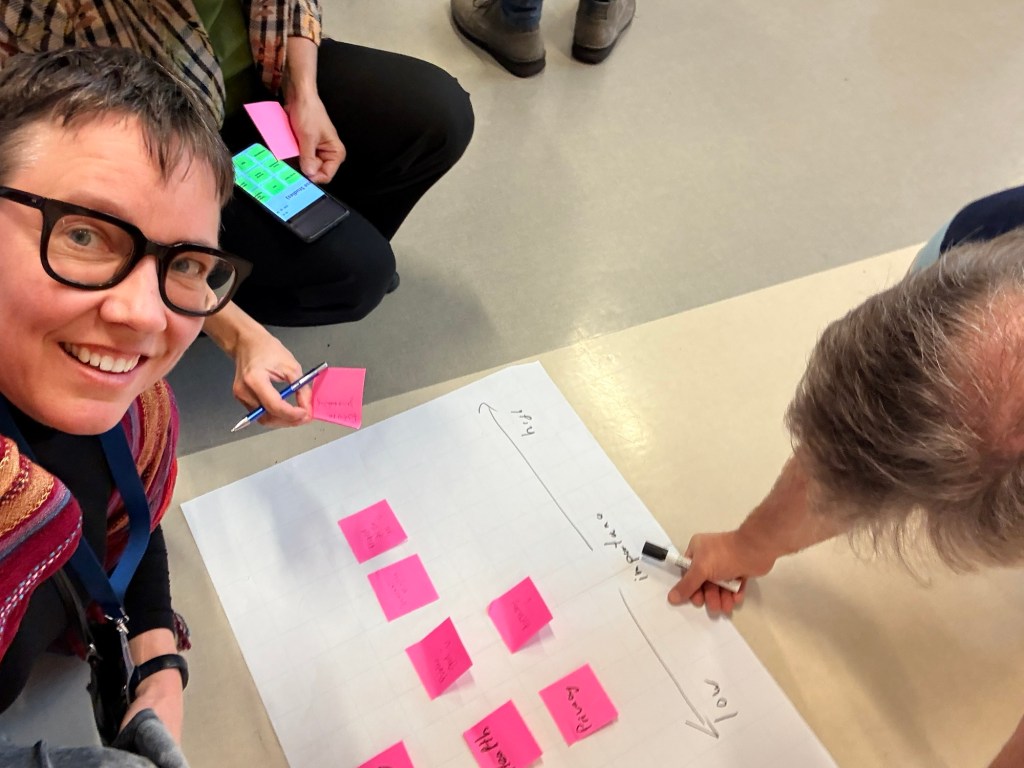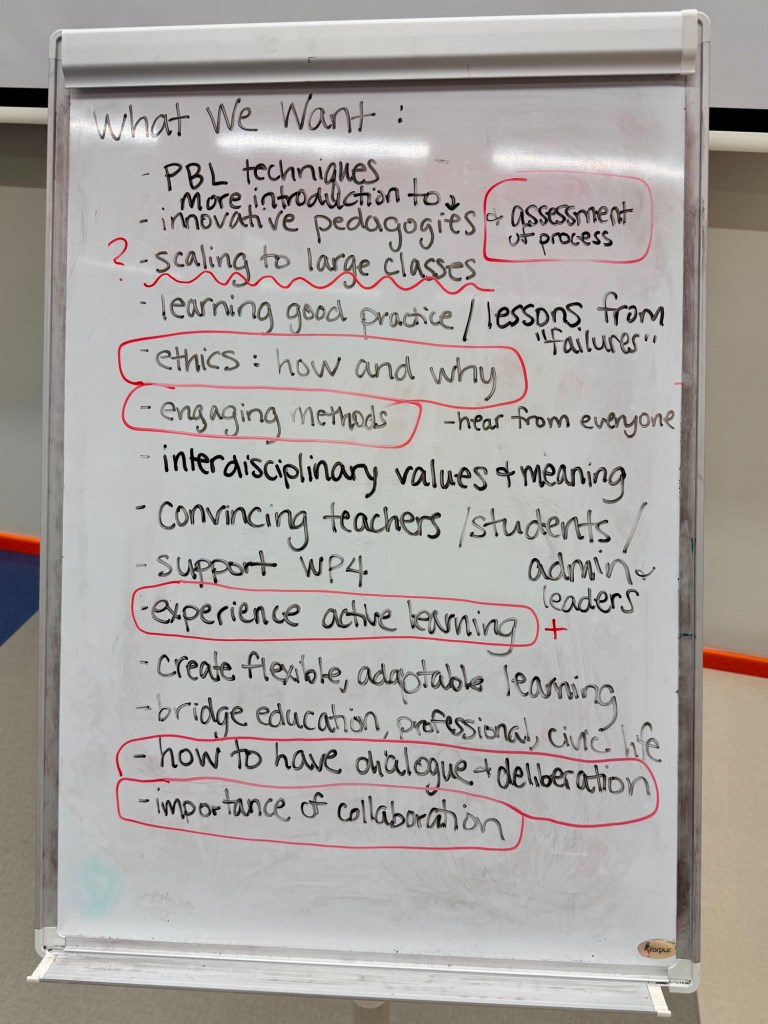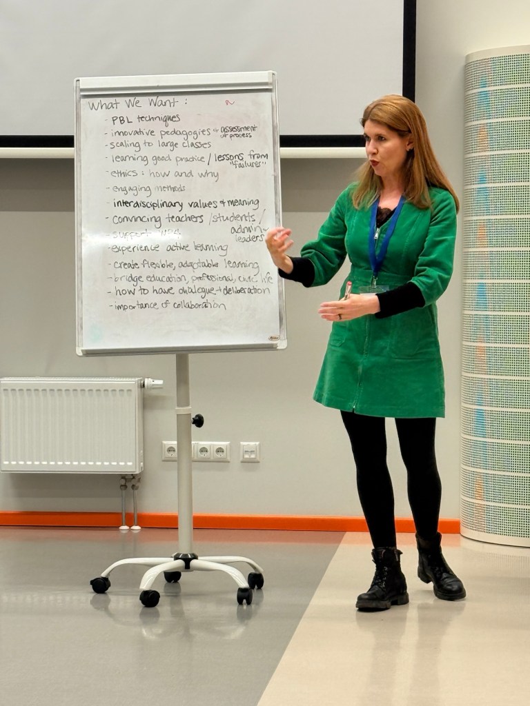 I have to say, Sarah was an absolute superstar! She’s a natural leader and event facilitator. I invited her because she was an author on our handbook and she teaches at NMITE, the New Model Institute for Technology & Engineering, based in the UK. They teach using all the featured pedagogies, so I figured she’d have the necessary skills—but wow! Was I impressed beyond expectations!