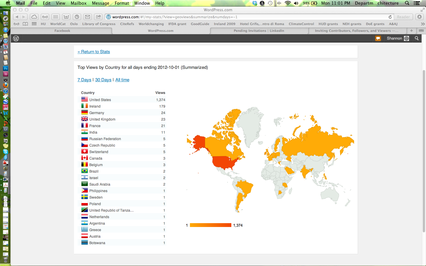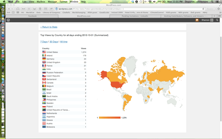 Viewing my statistics map in WordPress helps me assess how well I’m doing my duty as a Fulbright scholar, which I view as helping build and share cultural understanding.